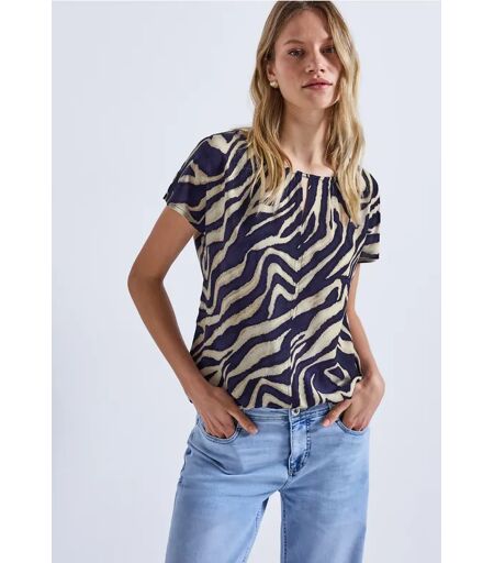 Street One Print-Shirt mit Cut-Out - Blau - Damen