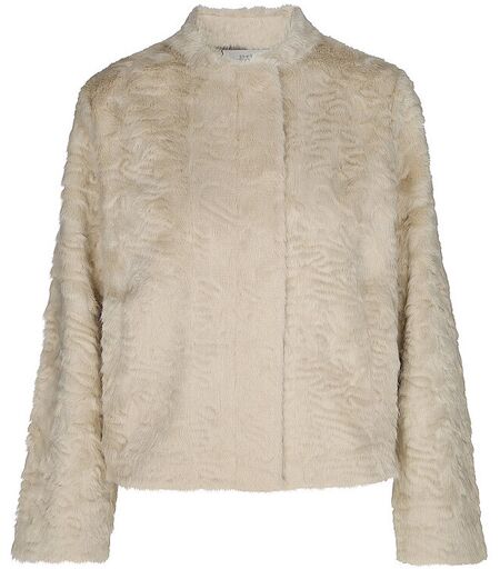 Damen Jacke in Felloptik Rundhalsausschnitt Schließt mit verdeckter Druckknopfleiste Langarm Seitliche Eingrifftaschen Gerade Passform Unifarben Farbbezeichnung: Beige Material: 100% Polyester ...