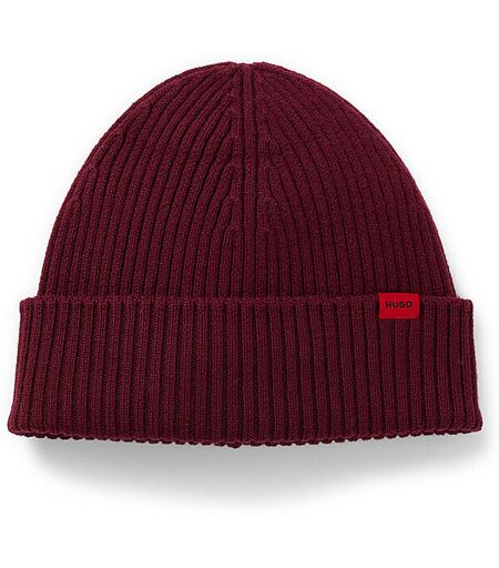 Minimalistische, gerippte HUGO Mütze mit ikonischem rotem Logo-Etikett. Gestrickt aus weichen, atmungsaktiven Garnen bietet sie angenehmen Tragekomfort. Die verwendete Wolle stammt aus nachhaltiger Gewinnung – mulesingfrei und unter Einhaltung der ‚Fünf Freiheiten‘ für das Tierwohl. Herren Mütze aus Schurwolle Breiter Umschlag mit Logo-Etikett Rippstruktur Unifarben Farbbezeichnung: Dark Red Material: 100% Schurwolle ...