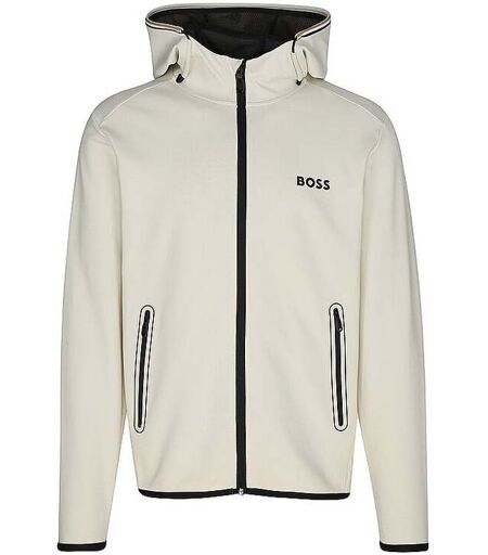 Herren Kapuzensweatjacke aus Stretch Kapuze mit Logo Detail Gerade geschnitten Logo Zwei Eingrifftaschen Gerade geschnitten Farbbezeichnung: Open White Material: 90% Polyamid (recycelt), 10% Elasthan ...
