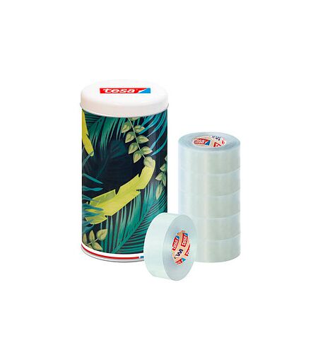 tesa ECO & CRYSTAL Dose Klebefilm transparent 19,0 mm x 33,0 m 6 Rollen – beste Klebefilme in einer hübschen DoseDie transparenten tesa tesafilm® ECO & CRYSTAL Kleberollen bieten eine zuverlässige Lösung für all Ihre Klebearbeiten. Holen Sie sich jetzt den Vorrat an Klebefilmrollen, um sicherzustellen, dass Sie stets genug Material für Ihre Arbeits- und Bastelprojekte haben.Transparent, reißfest und ablösbarDieser Klebefilm überzeugt nicht nur durch sein umweltfreundliches Material aus 90% recyeltem PET, sondern auch durch seine hohe Qualität. Er ist reißfest, lösungsmittelfrei und eignet sich daher perfekt für vielseitige Anwendungen im Büro, zuhause, in der Schule, für Bastelprojekte oder im Haushalt. Das Beste daran: er lässt sich leicht und rückstandsfrei wieder ablösen. Dadurch ist er ein echter Kundenliebling.Ressourcenschonend hergestelltMit einem hohen Anteil von 90% recyceltem PET-Material unterstreicht der Klebefilm das Engagement von tesa für den Umweltschutz. Der lösungsmittelfreie Klebstoff sorgt nicht nur für eine starke Haftung, sondern auch für eine umweltfreundliche und mühelose Anwendung. Entscheiden Sie sich für Qualität, Funktionalität und denken Sie dabei auch an die Umwelt.In der hübschen MetalldoseDie tesa Klebefilmrollen kommen in der dekorativen Metaldose zu Ihnen. Darin sind sie bestens und stilsicher aufbewahrt.Bestellen Sie Ihr Set noch heute und erleben Sie die bekannte tesa Qualität in jeder Anwendung. Ob im Büro, in der Schule oder unterwegs – der Klebefilm von tesa ist stets zur Hand, wenn Sie ihn brauchen. ...