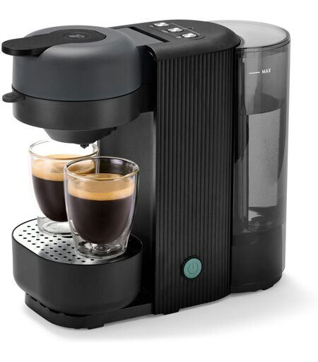 »Call me Pad« Kaffee Padmaschine Graphite Farbe: Graphite Lieferumfang: Padmaschine, 32 gratis Pads, 2 Padhalter (für 1 und 2 Pads), Reinigungsnadel, Bedienungsanleitung Anzahl Tassen: 1 Tasse, 2 Tassen, To-go-Becher Füllmenge: 1 Tasse = ca. 120 ml, 2 Tassen = ca. 240 ml, To-Go Becher = ca. 260 ml Entwickelt mit unseren Tchibo Kaffee-ExpertenSensorisch abgestimmt auf Tchibo und Eduscho Kaffeepads - kompatibel mit handelsüblichen Kaffeepads mit 7 cm DurchmesserGetränkemenge individuell einstellbar von 40 – 300 mlGleichzeitige Zubereitung von 2 Kaffees möglichTo-go-Becher TasteSchnelles Aufheizen und sehr leise während der ZubereitungLeichte Reinigung dank spülmaschinengeeigneter TeileAutomatisches Entkalkungsprogramm inkl. Erinnerung2 Padhalter für die Verwendung von 1 oder 2 Pads gleichzeitigAbnehmbarer Wassertank (ca. 1000 ml) mit WasserstandssensorAbnehmbare Abtropfschale für hohe BecherOn/Off Button & automatische Abschaltung nach 5 MinutenKompaktes & schmales DesignFarbedition Graphite mit 24 % recyceltem Kunststoff hergestellt, bezogen auf die gesamte Kunststoffmenge ...