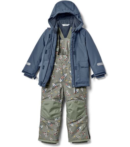 Kinder-Schneekombi Farbe: Jacke mittelblau Hose oliv mit mehrfarbigem Astronauten-Alloverprint Material: 100% Polyester (recycelt) Sonstige Hinweise: Größenlauf/Alter: Gr. 86/92 (ca. 12 – 24 M.) Gr. 98/104 (ca. 2 – 4 J.) Gr. 110/116 (ca. 4 – 6 J.) Gr. 122/128 (ca. 6 – 8 J.) Obermaterial hält einer Wassersäule bis 5.000 mm standWasserabweisend durch umweltschonende evoPel-ImprägnierungWind- und wasserdicht durch versiegelte NähteWeiche, leichte und wärmende WattierungVerstärkte Einsätze aus Oxford-Gewebe an Knien und GesäßWeiches und wärmendes Microfleece-Futter im oberen Bereich, Kapuze und TaschenMicrofleece-Futter mit Antipilling-Ausrüstung – verhindert die Bildung von FaserknötchenHose mit elastischen, längenverstellbaren HosenträgernHose mit Reißverschluss und Druckknopf, weitenregulierbar durch KlettverschlussÄrmel und Hosenbeine mit Taftfutter für leichtes An- und AusziehenOptimaler Nässeschutz durch elastischen Schneefang am BeinendeSeitlicher Reißverschluss am Beinabschluss für leichtes An- und AusziehenJacke mit verdecktem Reißverschluss mit Windschutzleiste und KinnschutzÄrmelabschluss mit weicher, warmer Rippstulpe und Klettleiste zur WeitenregulierungJacke mit 2 aufgesetzten Taschen und beschreibbarem Namensschild innenMit reflektierenden DesignelementenAbknöpfbare KapuzeAus recyceltem MaterialDiese Schneekombi schont Ressourcen. ...