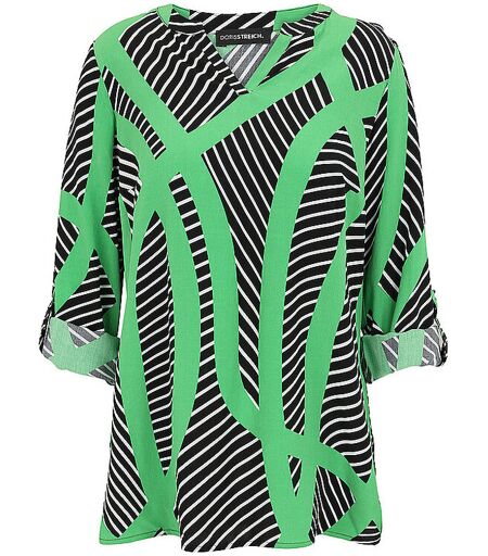 Damen Bluse aus reiner Viskose Tunikausschnitt 3/4 Ärmel Streifenmuster Gerade Passform Farbbezeichnung: Gras Material: 100% Viskose ...