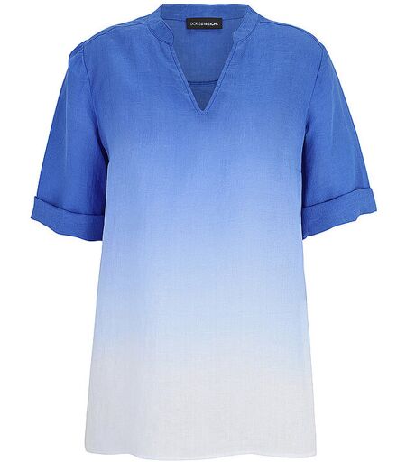 Damen Bluse aus reinem Leinen Tunikaauschnitt Kurzarm mit Krempe Farbverlaufsmuster Gerade geschnitten Farbbezeichnung: Kobalt Material: 100% Leinen ...