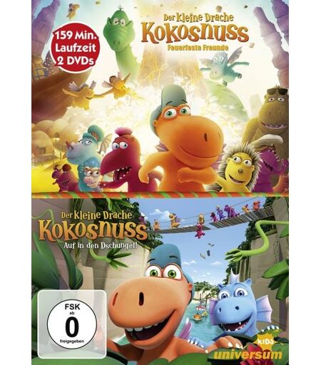 Der kleine Drache Kokosnuss: Aufregung im Dorf der Feuerdrachen: Das wertvolle Feuergras ist gestohlen worden! Der kleine Drache Kokosnuss erkennt seine große Chance, seiner Familie endlich zu beweisen, dass man sich auf ihn verlassen kann. Obwohl er noch nicht richtig fliegen kann, will er das Feuergras finden und nach Hause bringen. Zusammen mit seinen zwei besten Freunden - dem Fressdrachen Oskar, der Zuhause ausgelacht wird, weil er Vegetarier ist, und Matilda, die als Stachelschwein von den Drachen ohnehin nicht ernst genommen wird - begibt er sich auf die Reise und schon bald entdecken sie, dass die Dracheninsel in großer Gefahr ist... Der kleine Drache Kokosnuss - Auf in den Dschungel!: Der kleine Drache Kokosnuss ist in Aufbruchsstimmung: Die Abfahrt ins Ferienlager steht kurz bevor! Junge Feuerdrachen und Fressdrachen treten gemeinsam eine Schiffsfahrt zu den Dschungelinseln an, um so den Teamgeist unter den beiden Drachenspezies zu stärken. Feuerdrache Kokosnuss und sein bester Freund Oskar, der einzige vegetarische Fressdrache, finden es aber unfair, dass nur Drachen im Camp erlaubt sind. Sollen sie die Sommerferien etwa ohne ihre beste Freundin, das Stachelschwein Matilda, verbringen? ...