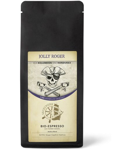 Tchibo Segelwerk - Jolly Roger Espresso Bio - 250 g Ganze Bohne - Intensität: 5/6 roasted https://www.eduscho.at/products/291302286092/segelwerk-jolly-roger-espresso-bio?article_id=161798320268
