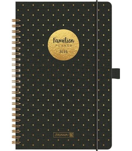 Baier & Schneider "BRUNNEN 1070291016 Buchkalender Familienplaner 2026 ""Gold-Punkte"" A5, Kunststoff"