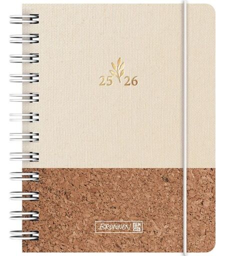 Blattgröße: 120×160 mm · 1 Seite = 1 Tag, Sa. und So. auf einer Seite · 352 Seiten, Druckfarbe Kalendarium: beige · Wire-O-Bindung · Kalendarium: August 2025 bis Juli 2026 · viersprachig: deutsch, englisch, französisch, italienisch · Textil-Einband, Hardcover, mit Kork-Applikationen, abgerundete Ecken, Farbe: creme, braun, partielle Folienveredelung, Gummizugverschluss · Eckperforation · Monatsplan August 2025 bis Dezember 2026, Ferientermine Deutschland, Österreich, Schweiz, Frankreich, Belgien, Luxemburg, Niederlande und Südtirol, 3 Seiten Notizen, 2 Seiten Stundenpläne und 2 Seiten Notenübersicht · mit Lineal · für Kalenderjahr 2025/2026 ...