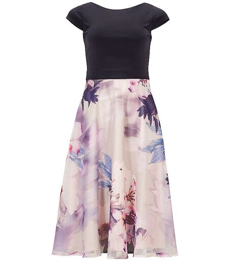 Damen Cocktailkleid aus Material-Mix Rundhalsausschnitt Kurz angeschnittene Ärmel Schmal geschnittenes, unifarbenes Oberteil Locker geschnittenes Rockteil Floraler Allover-Print Farbbezeichnung: Navy / Multi Material1: 100% Polyester ...