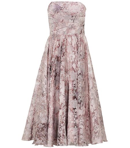 Feminines Cocktailkleid aus Organza Korsagen-Oberteil mit eleganter Drapierung Trägerlos Schließt mit Reißverschluss am Rücken Schwingender Rock Midi-Länge Organza mit floralem Ausbrenner-Muster Farbbezeichnung: Move Material: 62% Viskose, 38% Polyester ...