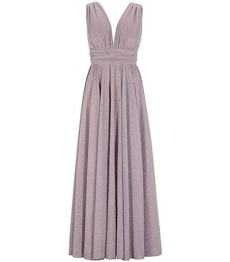 Damen Abendkleid aus glitzerndem Jersey Gewebe Tiefer Ausschnitt Breite Träger Schließt am Rücken mit Reißverschluss Unifarben Schwingender Rock Farbbezeichnung: Ila Material: 70% Nylon, 30% Metall ...
