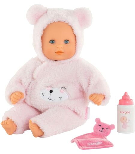 Die niedliche Puppe Calin von Corolle begeistert Minis ab 18 Monaten mit einem kuscheligen Teddy-Onesie und Schlafaugen. Puppe Calin Teddybär von Corolle Weichkörperpuppe ausziehbarer Teddy-Onesie mit Bärenohren, Schnuffeltuch und Flasche Schlafaugen Vanilleduft 30 cm aus Kunststoff und Textil ab 18 Monaten geeignet Die 30 Zentimeter große Babypuppe Calin von Corolle ist optimal auf Kids ab 18 Monaten abgestimmt. Sie verfügt über einen weichen Körper und duftet zart nach Vanille. Kleine Puppeneltern können Calin mit der Babyflasche füttern oder mit dem Schnuffeltuch spielen lassen. Legen sie die Kleine schlafen, fallen ihr die Augen zu. Vorher wird aber noch der kuschelige Teddy-Onesie mit der niedlichen Kapuze ausgezogen, sonst wird es Calin zu warm. Im Spiel mit dem Puppenkind lassen die Kleinen ihrer Fantasie freien Lauf. Sie nehmen die Rolle der Eltern ein und schulen sowohl ihre sozialen als auch motorischen Kompetenzen. ...