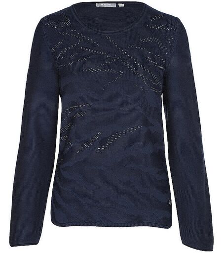 Damen Pullover aus angenehmen Baumwoll-Mix Rundhalsausschnitt Langarm Tonales Allovermuster mit Glitzerdetails Unifarben Gerade geschnitten Farbbezeichnung: Tinte Material: 50% Baumwolle, 50% Polyacryl ...