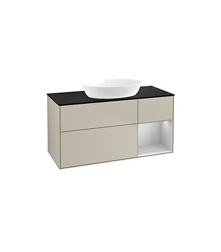 Villeroy und Boch Finion Waschtischunterschrank FA72GJHH 120cm, Abdeckplatte black matt, Regale Light grey matt lacquer, Sand Matt Lacquer