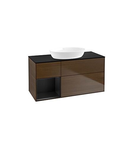 Villeroy und Boch Finion Waschtischunterschrank FA62PDGN 120cm, Abdeckplatte black matt, Regale Black matt lacquer, Walnut veneer
