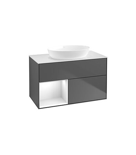 Villeroy und Boch Finion Waschtischunterschrank FA11GFGK 100cm, Abdeckplatte white matt, Regale Glossy white lacquer, Anthracite matt
