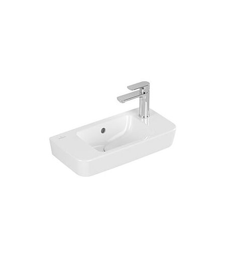 Villeroy und Boch O.novo Handwaschbecken 4342R5T2 50x25cm, Hahnloch rechts durch-, links vorgestochen, Überlauf, weiß AntiBac C-plus