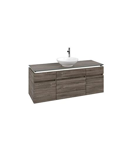Villeroy und Boch Legato Waschtischunterschrank B586L0RK 140x55x50cm, Waschtisch mittig, mit Beleuchtung, Stone Oak