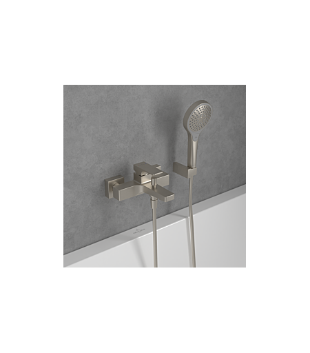 Villeroy und Boch Architectura Square Badewannenarmatur TVT12500100064 mit Umsteller, Wandmontage, brushed nickel black