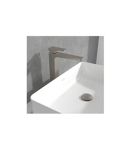 Villeroy und Boch Architectura Square Waschtischarmatur TVW12500200064 erhöht, mit Push-Open-Ablaufgarnitur, brushed nickel black