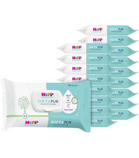 Hipp Soft & Pur, 18x48 St., Feuchttücher & Babytücher für Kinder, Regelmäßig anwenden, um die Wirkung zu erhöhen. Eigenschaften: mit Langzeitpflege der Babyhaut beseitigt Unreinheiten erfrischt und pflegt ist für Körper und Gesicht geeignet reinigt und pflegt die Babyhaut ist auch für empfindliche bis allergische Haut geeignet Zusammensetzung: ist vegan ist nicht parfümiert Anwendung: Reinigen Sie mit dem Reinigungstuch die Haut des Kindes. Nach Bedarf verwenden. Die Reinigungstücher sind für den einmaligen Gebrauch bestimmt. ...