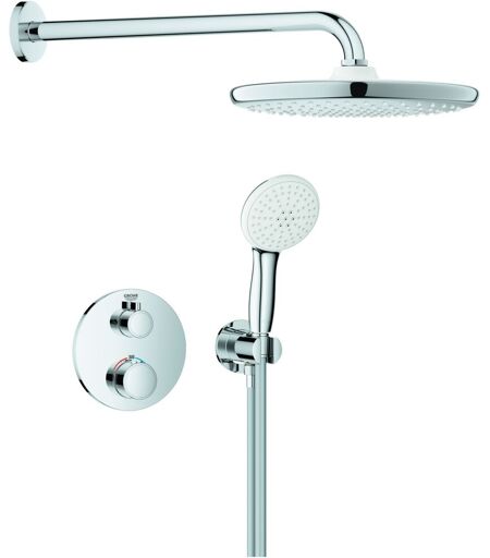 GROHE UP-Duschsystem Grohtherm 103996, runde Form, Tempesta 250 Kopfbrause-Set, UP-THM-Brausebatterie 2 Wege, Tempesta 110 Handbrause, Rotaflex Brauseschlauch 1500mm, Wandanschlussbogen mit Wandbrausehalter, erfordert GROHE Rapido Duschrahmen Mono, 1039960000 Grohtherm Duschsystem Unterputz mit Tempesta 250 bestehend aus: Unterputz Thermostat-Brausebatterie mit integrierter 2-Wege-Umstellung (24 076) Tempesta 250 Kopfbrause-Set (26 668) inklusive horizontalem Brausearm 380 mm Tempesta 110 Handbrause 2 Strahlarten (26 161) Wandanschlussbogen 1/2'' mit Wandbrausehalter (28 679) Rotaflex Brauseschlauch 1.500 mm (28 409) erfordert GROHE Rapido Duschrahmen Mono (103 993 9990) ...