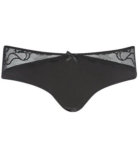 Damen Slip aus hochwertiger Microtouch-Qualität Hüftiger Sitz Spitze vorne und an den hinteren Beinausschnitten Kleine Zierschleife in der vorderen Mitte Mit eingearbeitetem Baumwollzwickel Abgesteppte Kanten Farbbezeichnung: Black Material: 90% Polyamid, 10% Elasthan ...