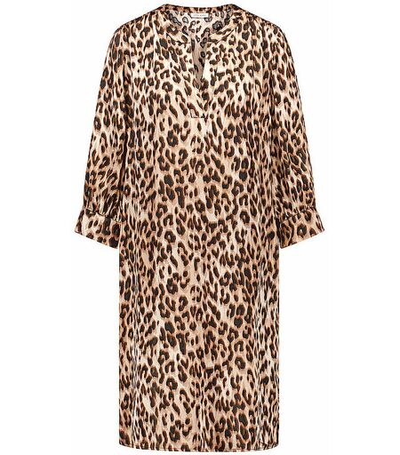 Modisches Midikleid aus reiner Viskose Tunikaausschnitt Langarm mit geknöpfter Manschette Leopardenprint Lockere Passform Unterknielänge Farbbezeichnung: Sesame/Camel/Schwarz Leo Druck Material: 100% Viskose ...