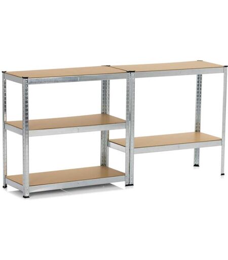Jetzt bringen Sie auch schwere Gegenstände wie Getränkekisten, Werkzeug und Co. sicher unter. Nutzen Sie das Schwerlastregal wahlweise als hohes Regal, um Ihre Lagermöglichkeiten zu erweitern oder funktionieren Sie 2 halbhohe Regale nebeneinander als Werkbank um. Der Aufbau ist durch das Stecksystem kinderleicht – die Regalböden können individuell angeordnet werden. Inhalt: 8 Beine, 5 Etagen, 16 Kunststoff-Schutzkappen Belastbarkeit: pro Regal 175 kg, gesamt 875 kg ...