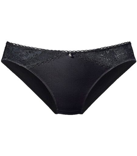Damen Slip aus weichem Microtouch-Material mit Spitzeneinsätzen Mit eingearbeitetem Baumwollzwickel Schmuckdetail in der vorderen Mitte Unifarben Farbbezeichnung: Black Material: 82% Polyamid TACTEL®, 18% Elasthan LYCRA®. ...