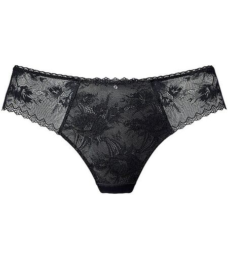 Damen String aus floraler, dezent transparenter Spitze und feinem Soft-Mesh Edles Schmuckaccesoire in der vorderen Mitte Mit eingearbeitetem Baumwollzwickel Unifarben Farbbezeichnung: Black Material: 87% Polyamid, 13% Elasthan ...