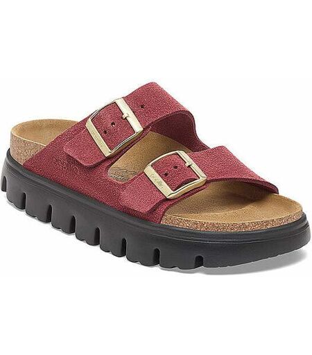 Der Arizona – ein zeitloser Klassiker für Damen und Herren – begeistert seit Jahrzehnten mit seinem unverwechselbaren Design. In dieser Variante präsentiert Papillio das beliebte Zweiriemermodell mit einer modischen Plateausohle und markant tiefem Profil. Die abgeschrägte Form im Zehen- und Fersenbereich sorgt für optimalen Laufkomfort. Das Obermaterial aus weichem Veloursleder rundet den Look angenehm ab. Damen Pantoletten aus Veloursleder Weite: Schmal Zwei Riemen mit jeweils einer individuell verstellbaren Dornschnalle aus Metall Anatomisch geformtes Kork-Latex-Fußbett Laufsohle mit tiefen Profillinien Farbbezeichnung: Zinfandel Material: Veloursleder Decksohle: Veloursleder Sohle: EVA ...