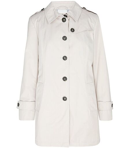 Klassischer Damen Trenchcoat aus feiner Baumwoll-Mischung Kragen Langarm mit Riegel Riegel mit Knopf an den Schultern Schließt mit Knopfleiste Seitliche Eingriffstaschen mit Knopf Bewegungsschlitz in der hinteren Mitte Gerade Passform Unifarben Farbbezeichnung: Kit Material: 58% Baumwolle, 42% Polyester Futter: 100% Polyester ...