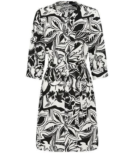 Damen Kleid aus Leinen-Mix Tunikaausschnitt 3/4 Ärmel Bindegürtel Gerade geschnitten Allover-Muster Brusttasche Knieumspielende Länge Farbbezeichnung: Sapphire Blue Länge: ca. 99cm Material: 55% Leinen, 45 % Baumwolle ...