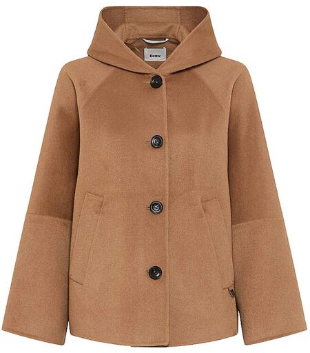 Entdecken Sie die Jacke im Style Dublin – ein modisches Statement für alle, die klare Linien und funktionale Details schätzen. Mit ihrer lässig-weit geschnittenen, leicht ausgestellten Silhouette bringt sie einen modernen, urbanen Look in Ihre Herbst/Winter-Garderobe. Die verkürzte Front und der abgerundete, verlängerte Saum am Rücken sorgen für eine schmeichelnde Proportion und eine stylische Rückenansicht. Besonderer Blickfang ist die großzügig geschnittene Kapuze, die dem Design eine sportive Note verleiht und zugleich Schutz vor Wind und Wetter bietet. Der Verschluss ist klassisch mit großen Knöpfen gestaltet, die in mattem Finish den minimalistischen Charakter betonen. Dezente, schräg platzierte Leistentaschen bieten Platz für Essentials und unterstreichen das cleane Design. Gefertigt aus hochwertigem Double-Face-Material mit 50% Wolle und 50% Polyester überzeugt die Jacke durch einen weichen, wärmenden Griff bei gleichzeitig formstabilem Fall. Die Double-Face-Verarbeitung verleiht dem Modell einen modernen, puristischen Charakter, der perfekt zu angesagten City-Looks passt. Ideal für alle, die zeitlose Klassiker mit modernem Twist lieben. Damen Jacke aus Woll-Mischung Kapuze Schließt mit Knopfleiste Langarm Seitliche Eingrifftaschen Gerade Passform Unifarben Farbbezeichnung: 54 Walnut Material: 50% Wolle, 50% Polyester ...