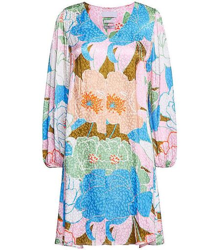 Sommerliches Damen Minikleid aus reiner Viskose V-Ausschnitt 3/4 Ärmel mit elastischem Bündchen Floraler Alloverprint Knieumspielend Farbbezeichnung: Rose Shadow Länge:ca:96cm. Material: 100% Viskose ...