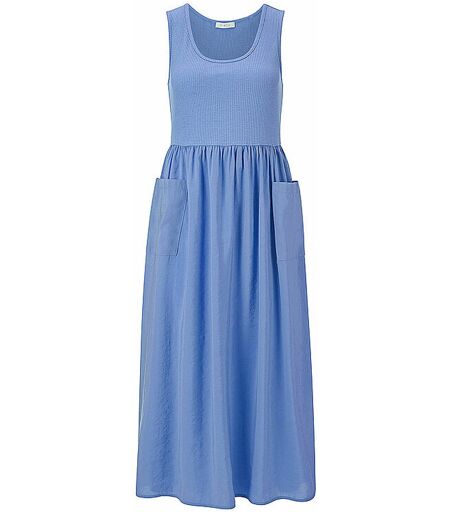 Damen Midikleid aus Material-Mix Mit Viskose-Jersey Rundhalsausschnitt Ärmellos Locker geschnittenes Rockteil Mit aufgesetzten Taschen Unifarben Midilänge Farbbezeichnung: Palace Blue Material: 97% Viskose, 3% Elasthan ...