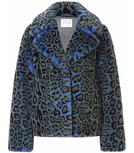 Damen Jacke in Felloptik Reverskragen Langarm Schließt mit Knopfleiste Gerade Passform Leo-Print Farbbezeichnung: Bluebelle Material: 100% Polyester ...