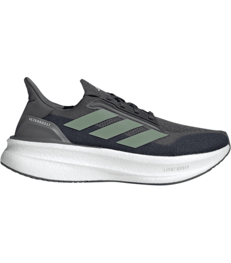 adidas Ultraboost 5x Laufschuh – Leichtigkeit und Performance für deine Läufe Der Ultraboost 5x setzt neue Maßstäbe in Sachen Leichtigkeit und Energierückgabe. Mit der leichtesten BOOST-Zwischensohle aller Zeiten bietet dieser Schuh ein außergewöhnlich frisches und reaktionsfreudiges Laufgefühl – von der ersten bis zur letzten Minute deines Laufs. Egal, ob du auf eine neue Bestzeit hinarbeitest oder längere Strecken erkundest, der Ultraboost 5x unterstützt dich mit optimaler Stabilität und Flexibilität. Das Torsion System sorgt für eine geschmeidige Bewegungsfreiheit vom Rück- zum Vorfuß, während die Außensohle aus Continental™ Gummi zuverlässigen Grip auf trockenem und nassem Untergrund garantiert. Das Textil-Obermaterial schmiegt sich angenehm an deinen Fuß und bietet atmungsaktiven Komfort. Zusätzlich punktet der Schuh mit einem nachhaltigen Design: Mindestens 20 % des Materials bestehen aus recycelten Ressourcen, was den CO2-Fußabdruck reduziert und die Umwelt schont. Produktdetails des adidas Ultraboost 5x: BOOST-Zwischensohle : Unsere leichteste Version für kontinuierliche Energierückgabe und ein frisches Laufgefühl. Torsion System : Unterstützt eine natürliche Abrollbewegung für Stabilität und Flexibilität. Continental™ Gummi-Außensohle : Bietet erstklassigen Grip bei nassen und trockenen Bedingungen. Recycelte Materialien : Mindestens 20 % des Materials bestehen aus recycelten Ressourcen. Obermaterial aus Textil : Leicht, atmungsaktiv und bequem. Technische Daten: Gewicht : 275 g (Größe 42 2/3) Sprengung : 10 mm (39 mm Ferse / 29 mm Vorfuß) Der Ultraboost 5x ist die perfekte Kombination aus Nachhaltigkeit, Komfort und Performance – ein unverzichtbarer Begleiter für Läuferinnen und Läufer, die das Beste aus sich herausholen wollen. ...