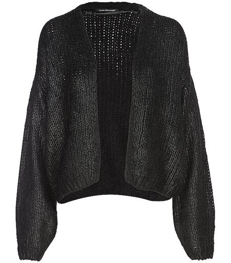 Damen Strickjacke aus hochwertigem Woll-Mix Langarm Schimmernde Optik Offene zutragen Unifarben Gerade Passform Farbbezeichnung: Black Obermaterial: 41% Wolle, 31% Alpaka, 28% Polyamid ...