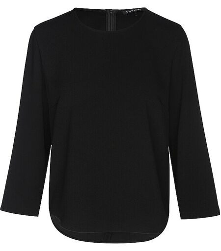 Damen Bluse aus fließendem Gewebe Rundhalsausschnitt Langarm Nahtfeiner Reißverschluss am Rückenteil Gerade geschnitten Unifarben Farbbezeichnung: Black Material: 82% Triacetat (zertifiziert), 18% Polyester ...