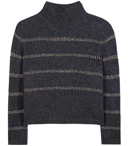 Damen Pullover aus Alpaka-Mischung Angeschnittener Rollkragen Langarm mit überschnittenen Schultern Ringelmuster mit feiner Lochstruktur Eingearbeitete, glänzende Pailletten Gerade Passform Farbbezeichnung: Urban Grey Material: 34% Polyamid, 26% Alpaka, 23% Polyester, 17% Wolle ...