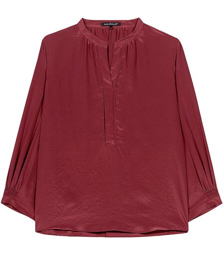 Bluse aus matt glänzendem Material in leger fallender Passform mit Faltendetails. Smokdetails an den Ärmeln und der Ausschnitt mit V-Schlitz vollenden das Design. Damen Bluse Langarm Farbbezeichnung: Berry Red Material: 100% Polyester recycelt ...
