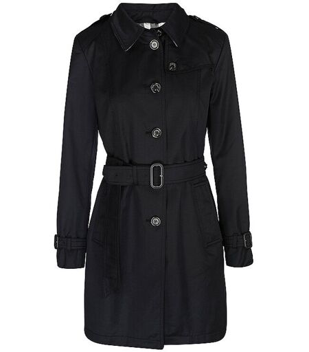 Damen Trenchcoat aus hochwertigem Baumwoll-Mix Hemdblusenkragen Langarm Weitenverstellbare Ärmelabschlüsse Schließt mit Knopfleiste Seitliche Eingriffstaschen Gerade Passform Unifarben Inklusive Taillengürtel Farbbezeichnung: Marine Material: 58% Baumwolle 42% Polyester Futter: 100% Polyester ...