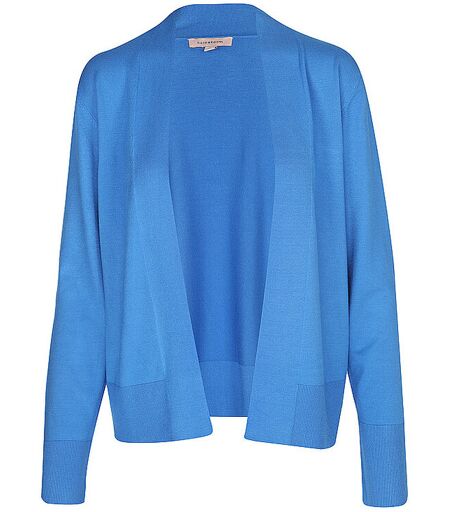 Damen Basic Strickjacke aus weichem Viskose-Mix Feinstrick mit glattem Griff Schalkragen Langarm Locker geschnitten Offen zu tragen Unifarben Farbbezeichnung: Rivera Material: 70% Viskose, 30% Polyester ...