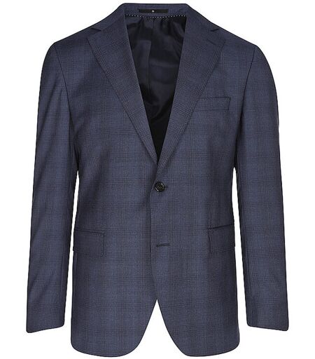 Elegantes Herren Sakko aus feinster Schurwolle Edel-schimmernde Qualität Reverskragen mit Knopfloch Langarm Brusttaschen Karomuster Shaped Fit Exklusive Qualität und Verarbeitung Farbbezeichnung: Blau Material: 100% Schurwolle ...