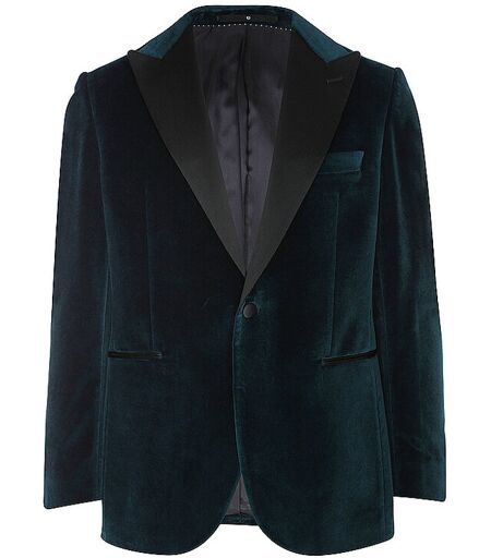 Herren Sakko mit Schalkragen aus Samt Langarm Brusttasche Paspeltaschen aus Satin Mit Spitzfasson Schließt mit einem Knopf Doppelschlitz hinten Schmale Passform Kontrastfarbene Details Farbbezeichnung: Dunkelgruen Material: 99% Baumwolle 1% Elasthan Futter: 100% Viskose ...