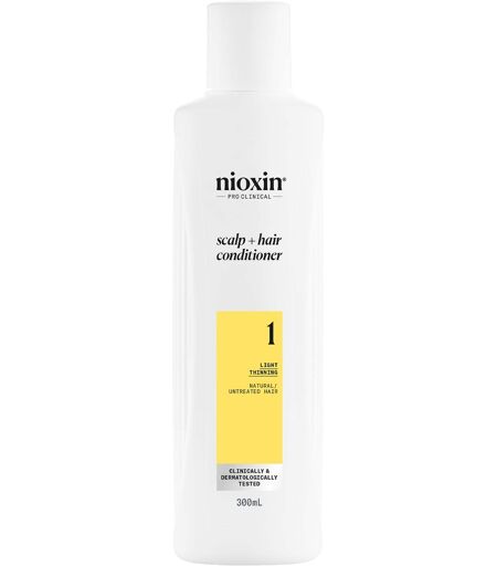 Offering supreme conditioning for natural hair with light thinning, the Nioxin System 1 Scalp + Hair Conditioner 300ml provides additional volume, substance and resilience making hair feel fuller and stronger. Infused with a rich blend of niacinamide and biotin, the high-performance formula glides through the lengths and ends to help lock in moisture, for a more supple appearance. Complement with the System 1 Shampoo to help promote a thicker, fuller-looking finish. ...