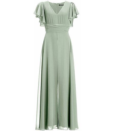 Eleganter Damen Jumpsuit aus Chiffon Mit Überrock V-Ausschnitt Kurze Volantärmel Unifarben Farbbezeichnung: Pistachio Green Material: 100% Polyester ...
